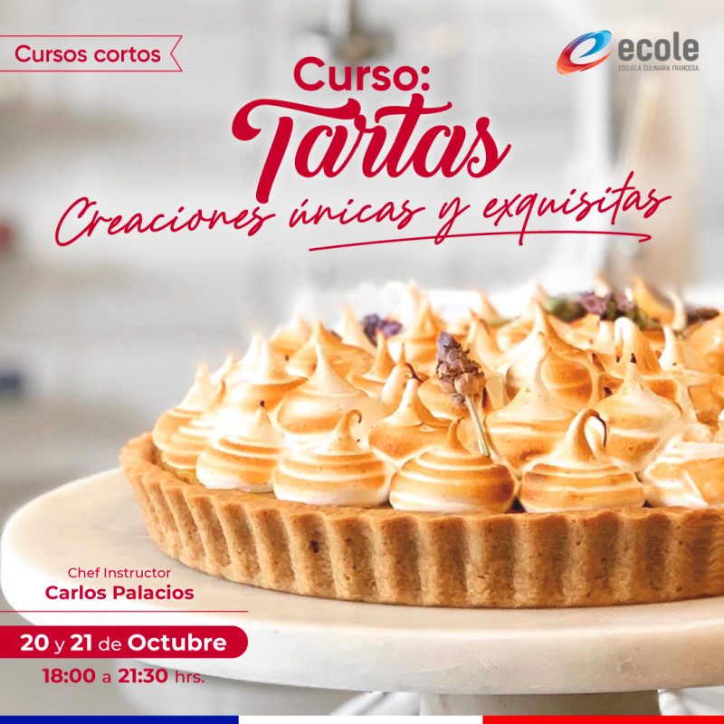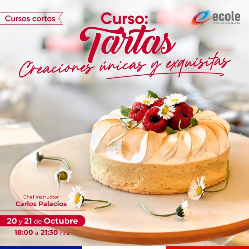 Fecha: 20 y 21 de octubre 2025. Hora: 18:00 a 21:30 hrs. Modalidad: Presencial Dirigido a: Este curso va dirigido a personas sin experiencia o profesionales de la pastelería con interés en ampliar sus conocimientos en la elaboración de masa para tartas, forrado, rellenado y decoración. Cupos totales: 15