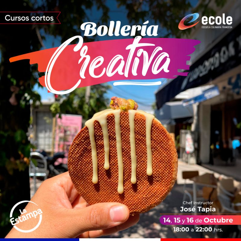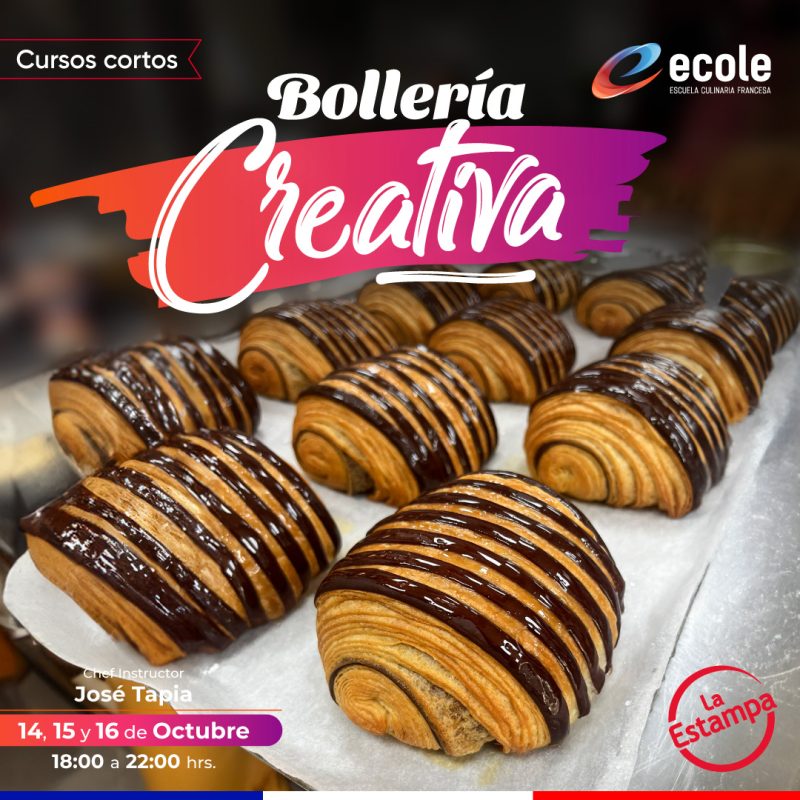 Fecha: 14, 15 y 16 de octubre de 2025. Hora: 18:00 a 22:00 hrs. Dirigido a: Personas que tienen conocimientos básicos en bollería o que ya hayan participado en el curso Bollería francesa, que les apasione la bollería / viennoiserie y que quieran aprender a crear bollos excepcionales. También a aquellos cocineros, pasteleros y/o emprendedores que desean ampliar sus conocimientos y habilidades en la elaboración de vinnoiserie y aprender nuevas ténicas y tendencias para ofrecer productos únicos y de alta calidad. Modalidad: Presencial Cupos totales: 15