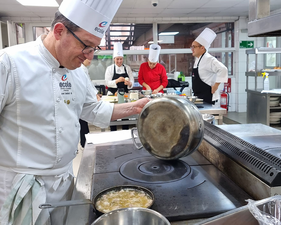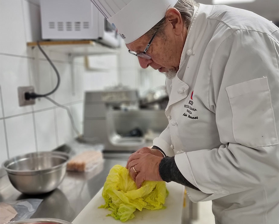 Después de una intensa semana de exámenes de fin de semestre, nuestro chef fundador y vice presidente de los Maîtres Cuisiniers de France, Alain Nonnet, lideró una capacitación para nuestros profesores.