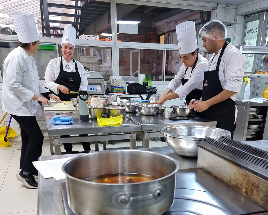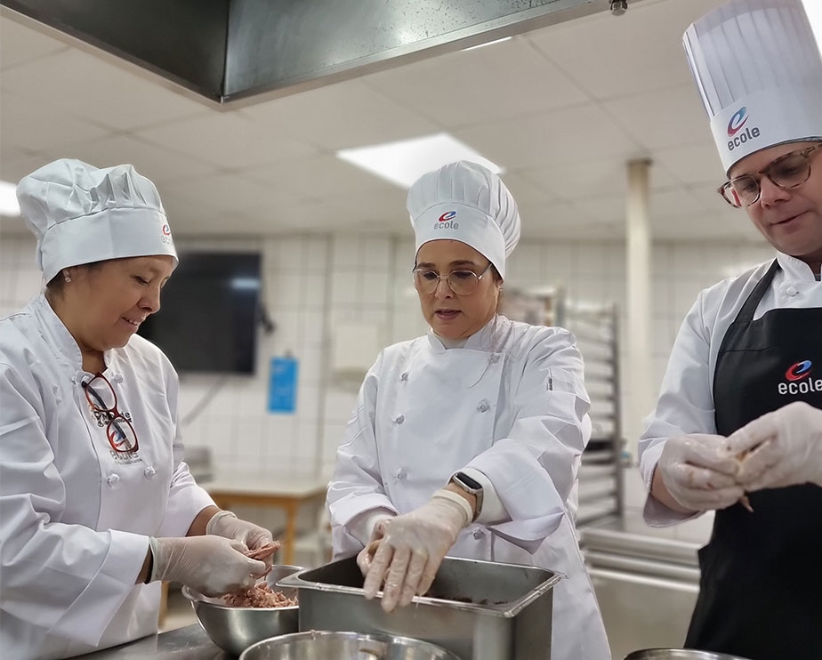 Para mantenernos vigentes y en permanente actualización, todos los semestres, nuestros docentes son capacitados en diversos temas. En esta ocasión, cocinaron preparaciones de Bearn y Toulouse, Cassoulet de Toulouse, un Garbure y un Chuoux Farci, impregnándose aún más de la cultura gastronómica tradicional francesa y cómo inculcarla de la forma más didáctica a nuestros estudiantes.