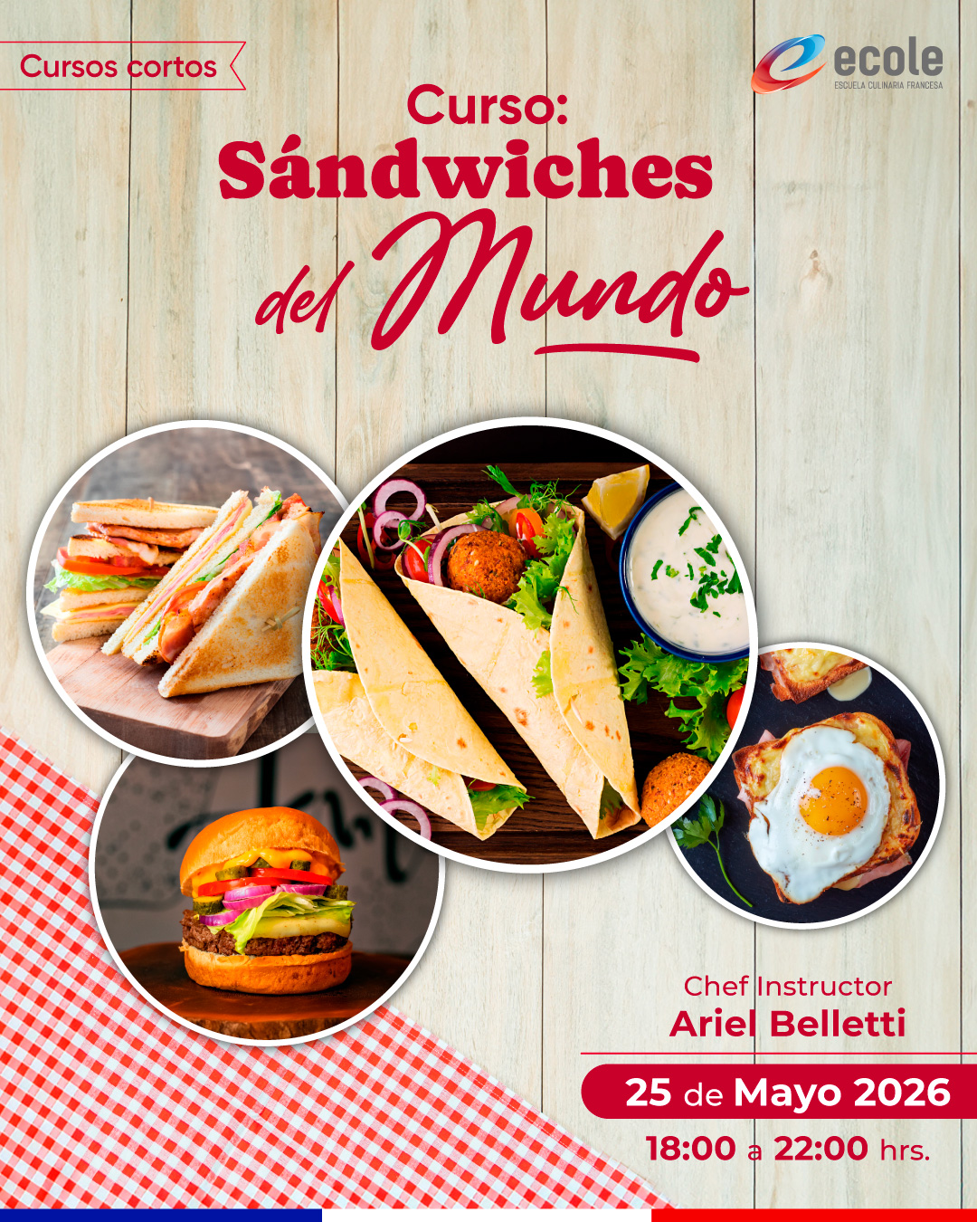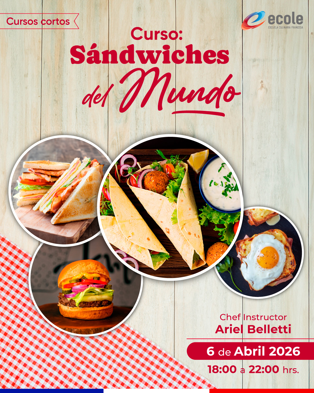 Dirigido a: Amantes de los sándwiches, que quieran aprender a preparar distintos variedades tradicionales de distintas partes del mundo, algunas de sus técnicas y preparaciones más clásicas y deliciosas. Los invitamos a adentrarse en un mundo de sabores. No es necesario tener experiencia previa.