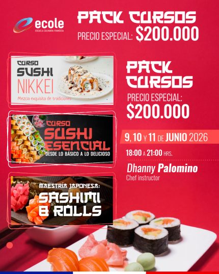 * De no poder asistir, se debe dar aviso con 10 días hábiles de anticipación a cursos@escuelaculinaria.cl. Si no se da aviso con esta anticipación, se dará por utilizada.
